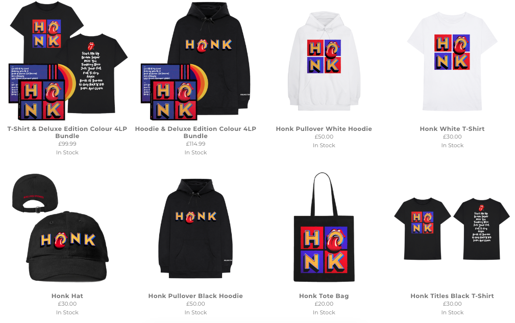 This is an example of how the merchandising from the 20th century has developed from a few t-shirts, CD’s and Vinyl’s, etc. to bundles made of CD’s and T-Shirts, Jumpers, Bags, and even POP Vinyl’s are made. Merchandise is a big part of live events, as they are sold when you go and see a band/artist live. They bring in another source of income for the artist.